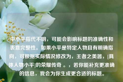 ![中小平指代不明,可能会影响标题的准确性和表意完整性。如果小平是特定人物且有明确指向,可根据实际情况修改为,王者之美器,[具体人物小平]的荣耀传奇 。,若你能补充更准确的信息,我会为你生成更合适的标题。](https://www.scrixy.cn/zb_users/upload/zltheme_20260210/58f89c677bf81441fc1beef8f3c610ab.jpg)