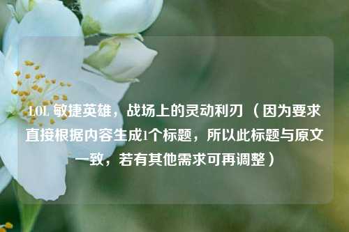 在《英雄联盟》这个充满***与策略的游戏世界里,敏捷英雄宛如战场上的灵动利刃,以其独特的机动性和高爆发输出能力,成为众多玩家喜爱的角色类型。