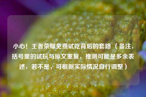 在王者荣耀这款热门游戏的世界里,各种活动层出不穷,而其中一些打着“免费试吃”旗号的活动,背后却隐藏着不为人知的套路。