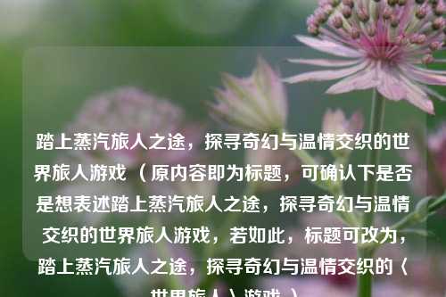 踏上蒸汽旅人之途,进入一个奇幻与温情交织的世界,开启一场独特的冒险之旅,在这个世界里,蒸汽元素与奇幻色彩碰撞出别样火花,旅人穿梭其中,经历着各种奇妙故事,游戏中不仅有令人惊叹的奇幻场景,更充满了温暖人心的情节,让玩家沉浸于这别具一格的世界,感受蒸汽与温情交融带来的独特魅力,去体验一段段精彩且富有意义的旅程,探索未知,收获感动,尽情享受这场奇幻与温情交织的游戏盛宴。