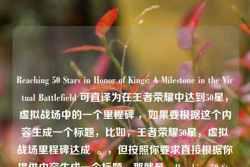 主要探讨了“王者荣耀达到50星”这一话题,询问其在虚拟战场中的里程碑意义及对应的英文表述,这反映出对王者荣耀中达到特定段位成就的关注,不仅涉及对该成就本身所代表的游戏进展和实力体现的思考,还包括对其英文表达的需求,可能用于游戏交流、记录或相关内容创作等场景,体现了玩家对游戏成就的重视以及在语言应用方面的考量,旨在更准确地传达这一重要的游戏阶段性成果。
