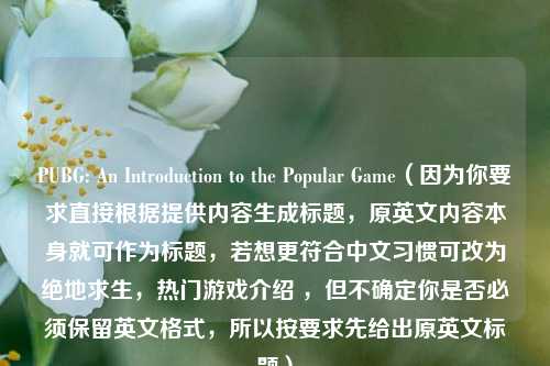 本文是关于热门游戏《绝地求生》(PUBG)的介绍。《绝地求生》是一款广受欢迎的游戏,它为玩家带来独特的游戏体验,在游戏中,玩家身处充满挑战的战场,需运用策略、技巧与应变能力来生存并击败对手,其逼真的场景、紧张***的节奏吸引了众多玩家,玩家要在广袤地图中搜集武器装备,与其他玩家展开激烈对抗,在不断缩小的安全区内争取成为最后的幸存者,这种独特玩法使其在游戏界占据重要地位,深受全球玩家喜爱。