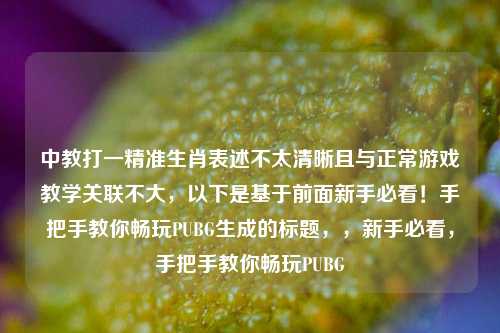 中“教打一精准生肖”表述不太清晰且与正常游戏教学无关,以下是基于“新手必看!手把手教你畅玩PUBG”生成的 100 - 200 字摘要:,聚焦于新手玩家,以“新手必看”为切入点,强调会通过手把手的方式,为新手玩家传授畅玩 PUBG 的 *** ,详细讲解游戏中的各种技巧、策略以及操作要点,帮助新手玩家更快熟悉游戏规则,提升游戏技能,更好地融入 PUBG 的游戏世界,在激烈的战场中生存并取得优势,助力新手玩家从初入游戏的懵懂状态,逐步成长为能够熟练应对各种情况的游戏高手,开启精彩的游戏体验之旅。