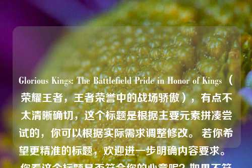 本文围绕王者荣耀战队“Glorious Kings: The Pride of the Battlefield in Honor of Kings”展开,该战队拥有独特的英文名字,展现出王者风范,在王者荣耀的战场上,他们以荣耀为信念,凭借自身实力和团队协作,成为战场中的骄傲象征。“Glorious Kings”寓意着辉煌的王者,他们怀揣着对胜利的渴望,不断拼搏,努力在比赛中斩获佳绩,书写属于自己的荣耀篇章,致力于成为王者荣耀领域中令人瞩目的战队,为战队荣誉和热爱的游戏全力以赴。