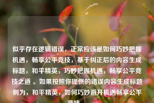 该内容聚焦于和平精英中如何巧妙避开机遇并畅享公平竞技,然而此表述存在矛盾之处,正常逻辑应是把握机遇以实现公平竞技,在和平精英这款游戏里,玩家需掌握多种技巧来提升竞技水平,比如熟悉地图布局,提前规划行动路线,从而能更高效地应对各种情况,在复杂战局中把握时机,与队友默契配合,合理利用武器装备,精准射击,减少失误,通过这些方式在公平竞技环境下争取胜利,而不是避开机遇,应是在机遇出现时敏锐捕捉并妥善利用,以在游戏中获得良好体验。