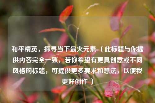 在和平精英这款风靡全球的热门游戏中,总是不断涌现出各种备受玩家追捧的元素,究竟和平精英什么最火呢?