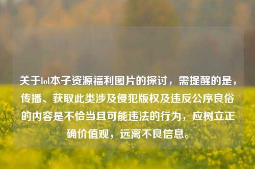 需要强调的是,传播、获取和分享“lol本子资源福利图片”这类内容是不恰当且违反道德和法律规定的行为。